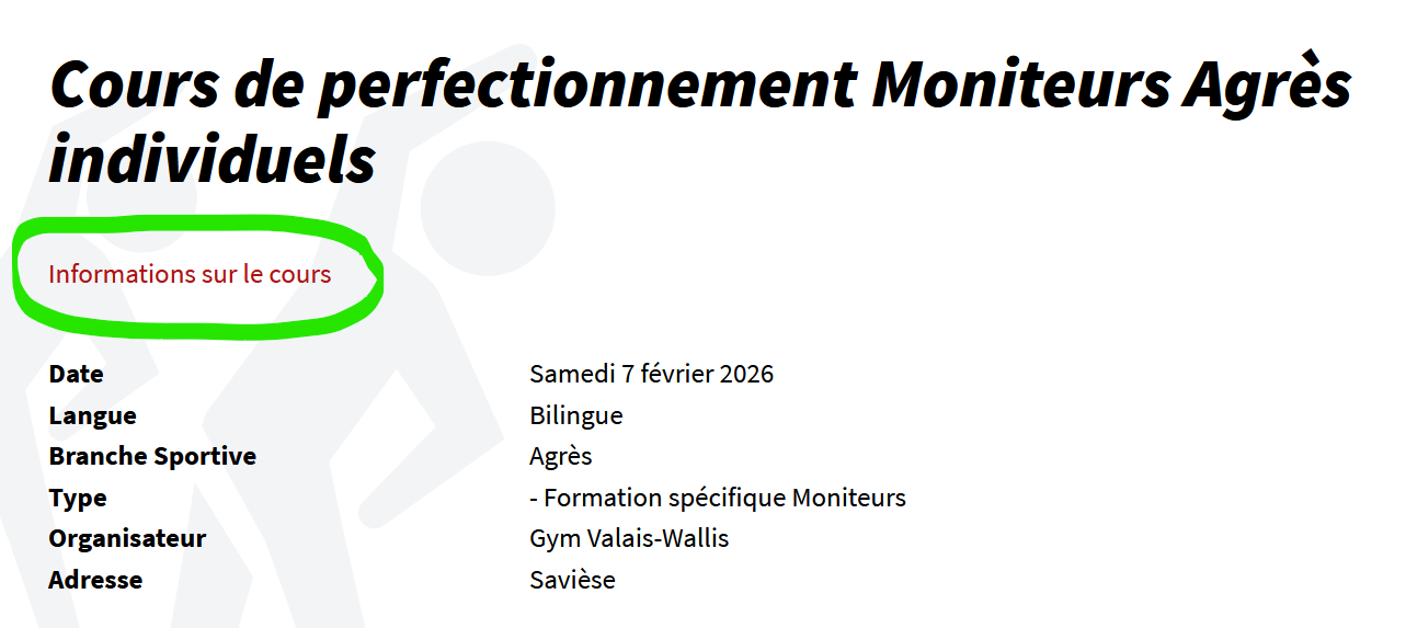 Pour les cours Gym Valais-Wallis, retrouvez désormais toutes les informations ad hoc également sur le Calendrier. Auparavant, ces informations n’étaient accessibles que depuis l’onglet « Inscription ».